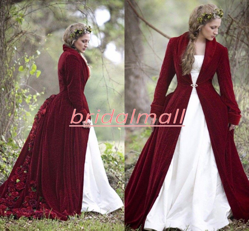 Discount Winter 2020 Christmas Ball Gown Wedding Dresses With Cloak Burgundy Velvet Long Sleeve Muslim Bridal Gowns Hand Made Flowers Robes De Mariee