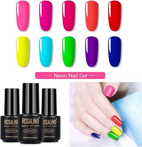 Rosalind Neon Gel Nail Polish 10pcs 7ml Soak Off Neon Pink Red