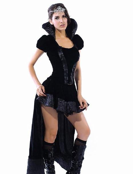 Women Black Wicked Queen Vampire Witch Costume Fancy Dress Halloween