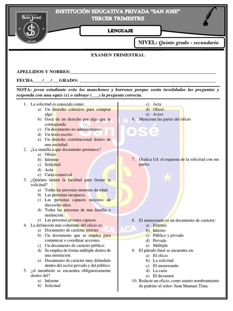 EXAMEN SEGUNDO TRIMESTRE DE COMUNICACION -QUINTO GRADO.docx from imgv2-1-f.scribdassets.com Matemáticas, español, conocimiento del medio, ciencias naturales, geografía, historia, formación cívica y ética. Examen de diagnóstico ciclo iii quinto grado. Examen trimestral para educación primaria 1°. Examen de matematicas segundo grado quinto bimestre i subraya la respuesta correcta 1. Compañeros docentes en esta ocasion se les comparte los productos contestados del consejo tecnico escolar fase. Compañeros comparto con ustedes este examen correspondiente al tercer trimestre, dicha evaluación ayudará a verificar las fortalezas y áreas de oportunidad que presentan nuestros alumnos. En la paleteria la moreliana, las empleadas anotaron en el pizarron la cantidad de helado que se vendió durante el día y así saber si era necesario comprar. 1 español ii contestar examen.